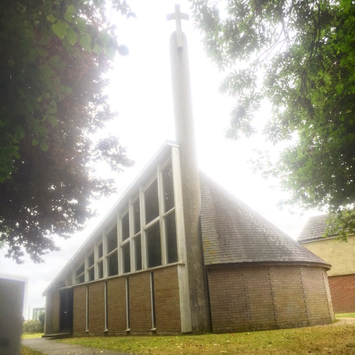 They’re also part of the wider landscape. This is no museum village or precious island for modernist buffs. The village hall had its towers removed during WWII thanks to the presence of aircraft flying in to land at RAF Rivenhall, a bomber base just a few lanes away. In the afternoon my friend and I discover it on a driving adventure, turning left and right at random. On the edge of the old airfield perimeter is the isolated 900-year old church of Holy Trinity Bradwell, where an enthusiastic lady guides us around the fading Medieval paintings and monuments falling off the wall, the marble carvings of long-forgotten nobility kneeling in prayer but missing their hands. She hopes she might have time to trace their American descendants to request donations for their repair. There’s just one hangar left at the old airfield, long and squat and black behind the overgrown remains of the taxiways. The runways have long disappeared due to quarrying for aggregates that has lowered the entire landscape by several metres. The flat ground is soft khaki brown sand scattered with rough vegetation, suddenly giving way to steep slopes that crumble into vast craters with young lakes at the bottom. A pair of buzzards mew around the rim. Someone has sprayed the words BUM and FUN on two old concrete roadblocks. It felt like a different world from the straight lines and careful planning of Silver End just a few hundred yards away.