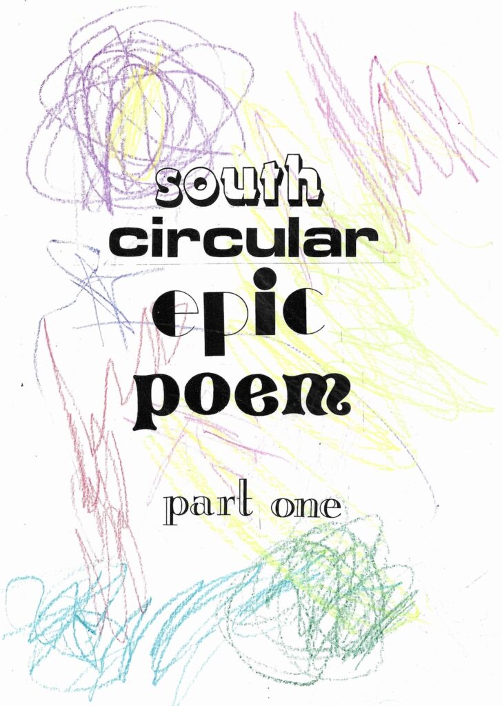 Cover page of the first and only installment of a projected epic poem, never to be completed. Edition of 5. Letraset, typewriter, xerox. Intervention by Nina.