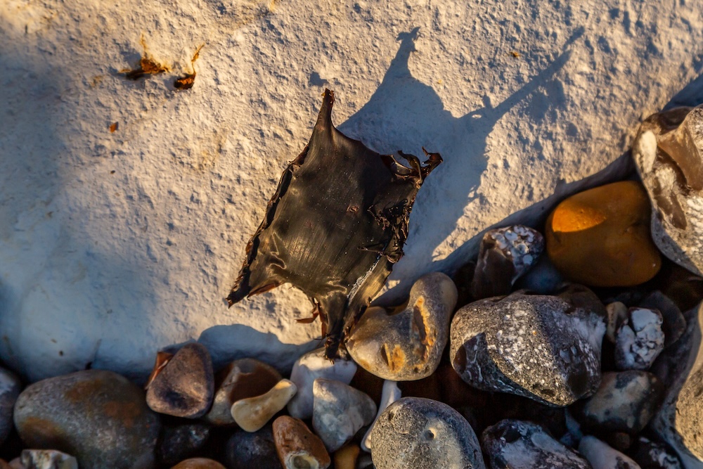 A mermaid’s purse, washed up on a pebble beach in Sussex. Photo: Lemanieh