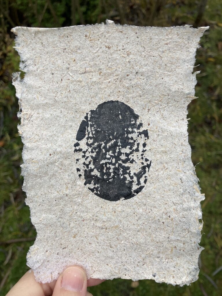 Back home, I cut the potato in half. Inside, it was perfect. Paintbrush in hand I slicked ink across the cut surface. Pressed it down onto a sheet of paper then lifted it to reveal a dense, black oval. Pressed down once more, a lighter imprint this time round. I continued, again and again, filling page after page with potato prints. The ovals shifted and transformed in front of my eyes. The potato’s imprint became a waxing moon, a row of beans, a set of scans, the inside of a skull. One single potato which held so much.